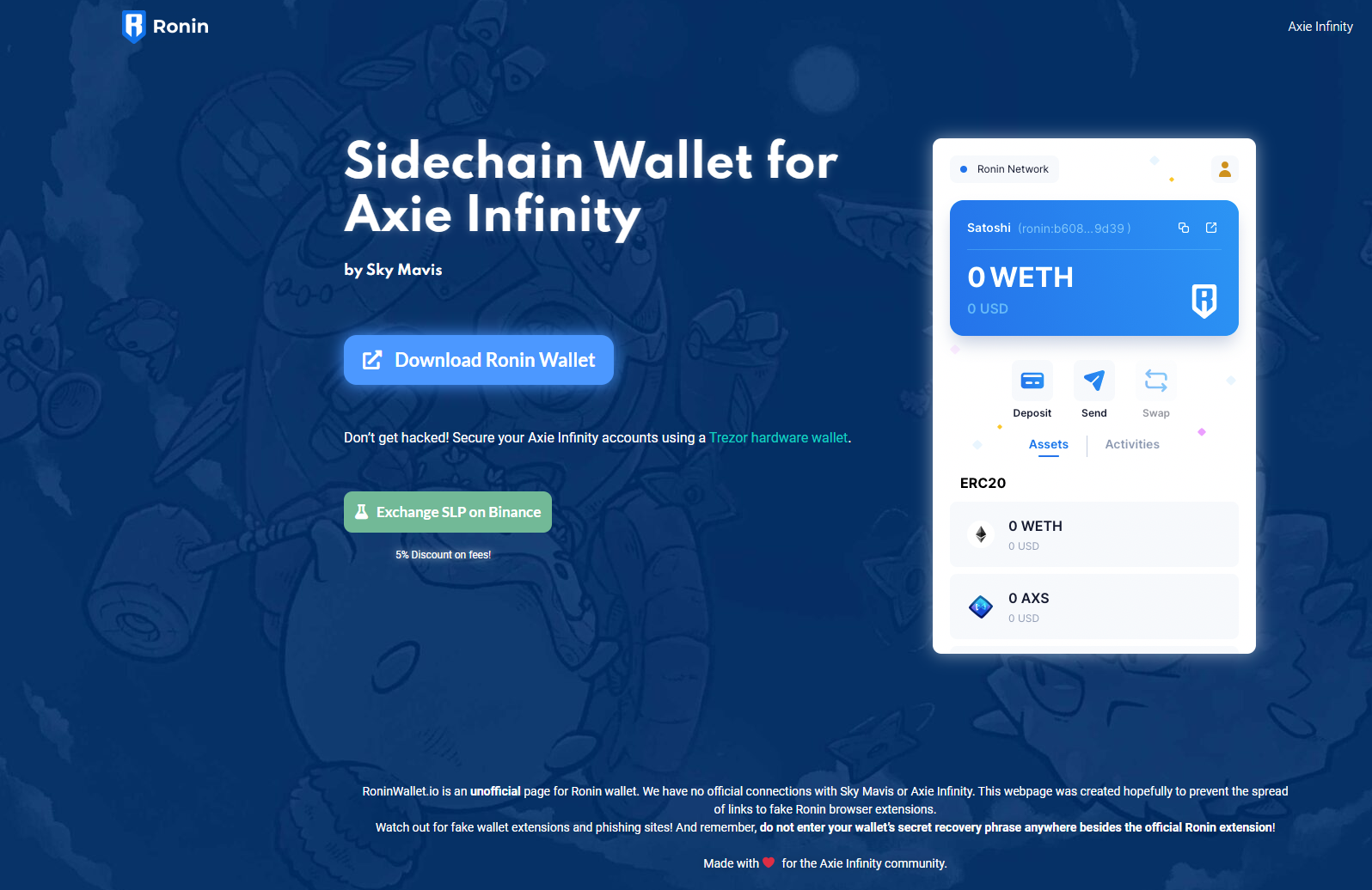 RONIN WALLET - WELCOME TO RONIN – THE AXIE INFINITY WALLETHOW TO ACTIVATE RONIN WALLET TO TOP UP AXIE INFINITYRonin Wallet is a cryptocurrency pockets that facilitates you transact in Axie Infinity. If you haven't activated this pockets, you'll now no longer be capable of make transactions, withdraw and pinnacle up cryptocurrencies including AXS, SPL…Before growing Ronin Wallet, you want to have an Axie Infinity account. Check out our manual to growing an Axie Infinity account in case you don’t have already got one. After that, you could observe the commands beneath this newsletter to spark off Ronin pockets on Chrome PC.Activate Ronin Wallet in Axie Infninty, manual to spark off Ronin Wallet to shop for AxieCreate an account Ronin WalletStep 1: After you've got got created your Axie Infinity account, you'll be redirected to the primary interface of your Axie Infinity account. Here, click on Activate Ronin Wallet as proven beneathStep 2: Choose Set up e mail & password.Step 3: Enter your Ronin Wallet e mail account and password.An activation code may be despatched to the e-mail you simply registered. Go to abnj’s e mail inbox and test the affirmation code then fill withinside the code container and press Confirm.Install Ronin WalletStep 1: Start putting in Ronin pockets for your browser, click on Install Ronin Wallet.Step 2: The Ronin pockets extension hyperlink will seem in a brand new tab shortly, please click on Add to Chrome to feature the Ronin pockets extension on your browser.Step 3: At the puzzle piece icon, click on on it and pin Ronin Wallet at the Chrome extension bar for ease of use.a.Click on Ronin Wallet’s icon and pick Get Started.b.Choose subsequent I’m new. Let’s get up! as proven beneath.c.Press Reveal Seed Phrase to show the unique phrase string.You can keep this string of phrases with the aid of using taking a image and urgent Confirm Seed Phrase.In the following step you'll need to fill in four phrases similar to the numbers assigned to the ones phrases withinside the phrase series above. Now assessment the photograph you simply stored and fill it in again.And after the final step above, the Ronin pockets may be opened in case you get hold of this message.Activate Ronin pocketsStep 1: Return to the primary interface of the account withinside the Ronin Wallet Setup step above. Click Attach Ronin to account. Click on it and you may see a message just like the one beneath seem, pick Confirm.Step 2: Once you've got got effectively activated the Ronin pockets, you'll see opportunity alternatives for the Active Ronin Wallet table. Deposit to Ronin is the choice to pinnacle up the pockets, vice versa Withdraw from Ronin is to withdraw cash from the pockets.Step 3: Choose one of the alternatives and you may see a MetaMask unencumber message seem. Enter your MetaMask account password and pick Unlock.To end unlocking MetaMask, pick your MetaMask account and click on Next.Choose subsequent Connect.Select Deposit on the pinnacle.Back to the account interface, click on copied Ronin Address.See more: Instructions for gambling the Olympic-themed Doodle Island Championship sport simply delivered with the aid of using Google GooglePaste the Ronin Address https://roninwallet.io/ and pick the foreign money you need to extrade withinside the Asset, write the quantity withinside the Amout section. But first you should have ETH (Ethereum Network) to redeem.